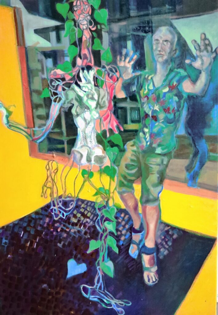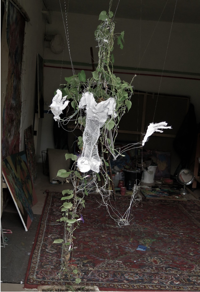 Les plantes poussent autour du personnage et l’habille d’un frou-frou végétal.